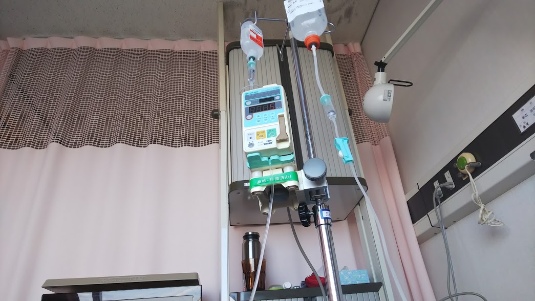 前回の入院時も点滴の管を入れる作業には苦労した(苦労したのはもち、看護師さん、笑)。