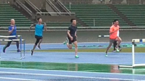 タイムを取っていないので前回との比較ができないが、前回よりも前傾を意識して走れたと思う。早々にケツに来たので良い走りができていたかなと。小西君がスタートを切った後、間隔をあけずにすぐにスタートしてくらいついて走ったことも好結果をもたらしたと思う。漠然と追いかけるよりもレースの競り合いを彷彿とさせるような距離感で走った方が気合が入る。w