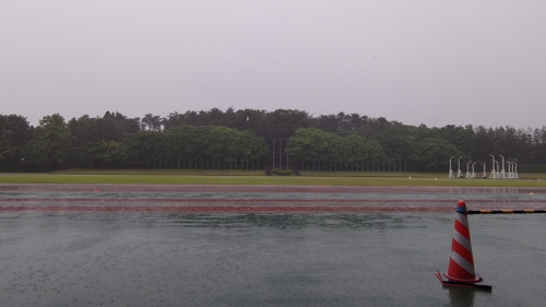 ハードルの高さは女子の一つ下なのであまり高さを出す必要はないものの、ギリを越えようとすると逆に腰が落ちてインターバルが届かなくなる不器用さ。結果的に元気がある前半はいつも通りの高さでクリアしつつ、逆脚と疲労が出た後半のみ高さを抑え気味にした。