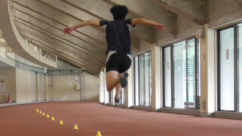 神経系トレーニングの1~6歩ハードル。強制的に逆脚のクリアランスを要求されるので、こういう練習は助かる。本数が若者向けなので疲労感がすごいことになっているが、冬季中でも神経系やキレを出すために何度か入れていきたいと思う。