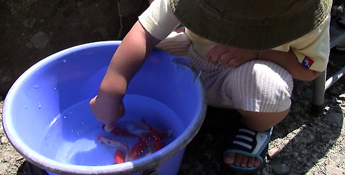 釣りと言っても、場所は釣り堀。 相手は10cmくらいの金魚。