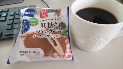 こんなパンがあったので、お昼はこれ。そもそも、低糖質の前にメープルやマーガリンがいらんだろうってツッコミがきそうだが(笑)。