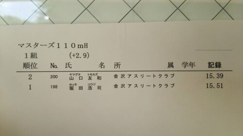 左膝裏痛が再発したにも関わらず走れたことを評価すべきか…否。もっとも負けてはならない相手に遅れをとったことを強烈に反省すべし。前半の加速中は痛みとの戦い。中間はリズムが上がらず、後半は練習不足がモロに出て失速…(。>д<)山口と並んで走ると、無駄に力んでしまう。メンコがいるな。(-_-;)しっかり現状を理解して、次に活かそう。