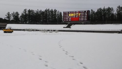 西部は白地のまま雪融けは進んでおらず。大型ディスプレイは完成したのか、試験中のよう。
