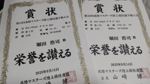 北陸マスターズの大会記録を北陸人の手元に戻す使命を無事達成。ショートハードルは110って拘りが大きかったけど、チビでもゴリゴリに刻む感じを体感できる規格を楽しめた。次は来年の石川マスターズかな?