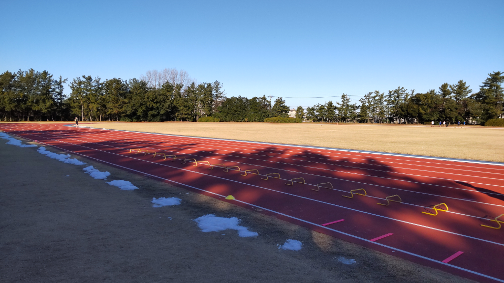 アップを始めたところ第二曲走路が松葉だまりになっていて、とても走れる状況ではなかった。倉庫に竹ぼうきがあったので外側4レーンを綺麗にしておいた。除雪以外でもこんなことがあるのかと思うことはあるが、県選手権あたりの花粉も凄いことになっているので西部緑地一帯の改修工事では針葉樹をもう少し減らして欲しい。