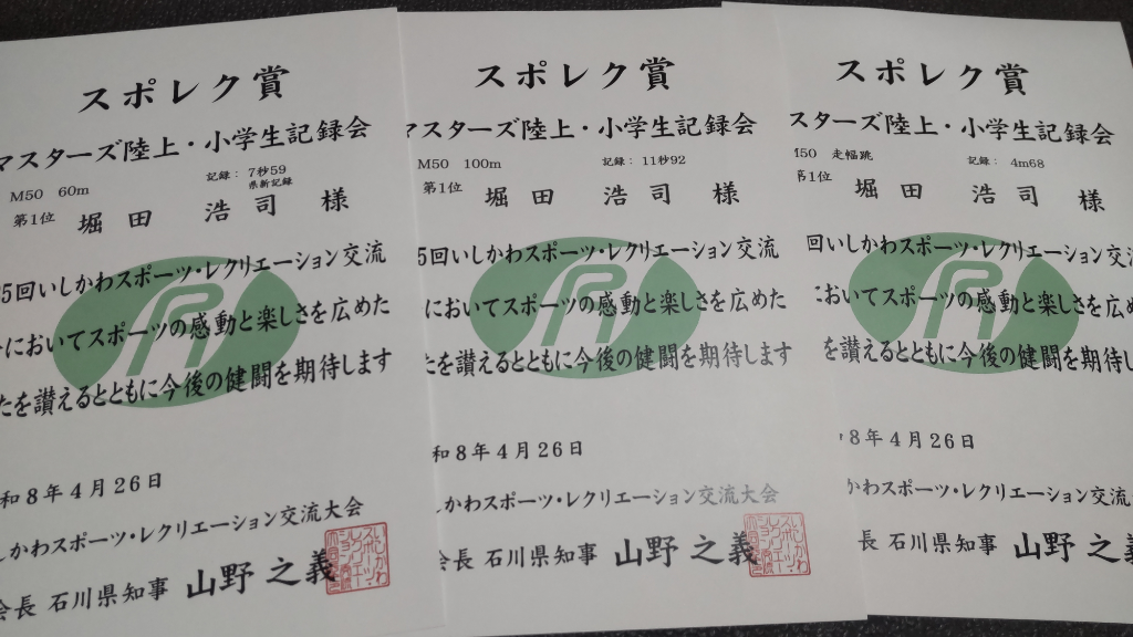 疲労を最小限に抑えるためにほぼノーアップで、直前のスタート練習のみで対応してみたが、これはこれで腰のダメージが蓄積されてきたらしい。100mの時に押せたスタブロがほぼ押せないままヌルっとスタートになったのでM50の県記録更新はダメだったかと思ったが、その後は意外と身体が動いてくれてクエストクリアができた。
